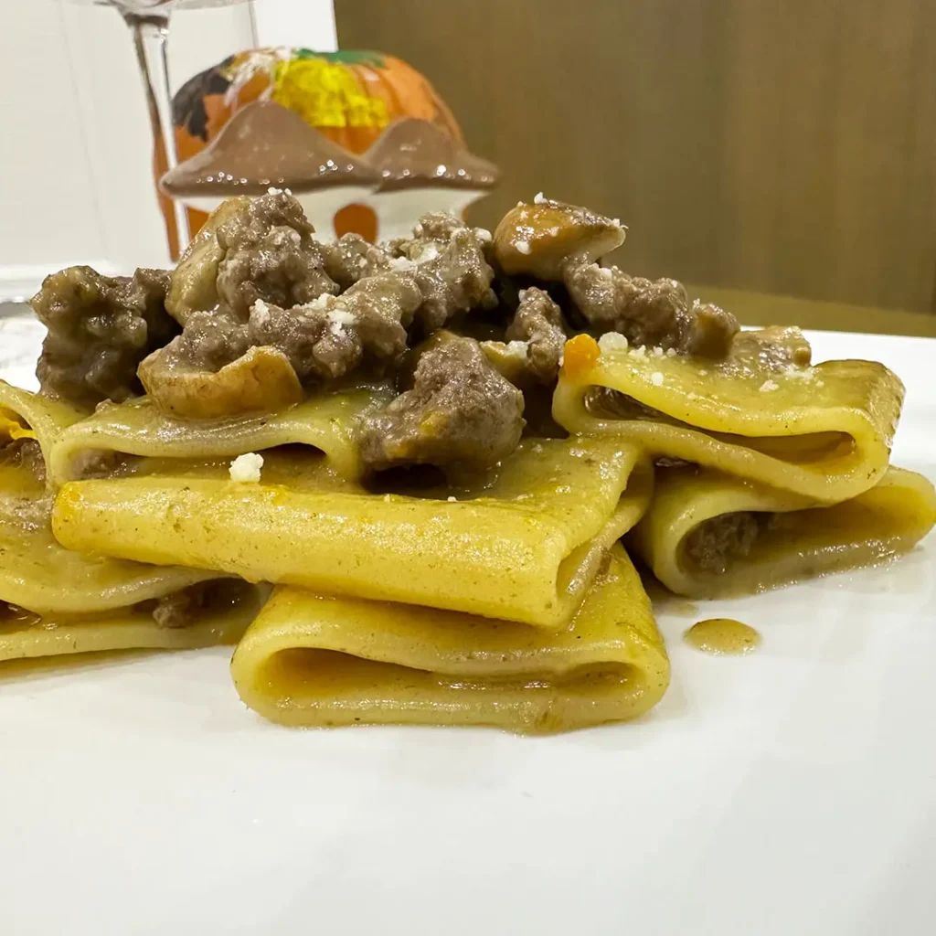 Paccheri al ragù bianco di cinghiale e porcini