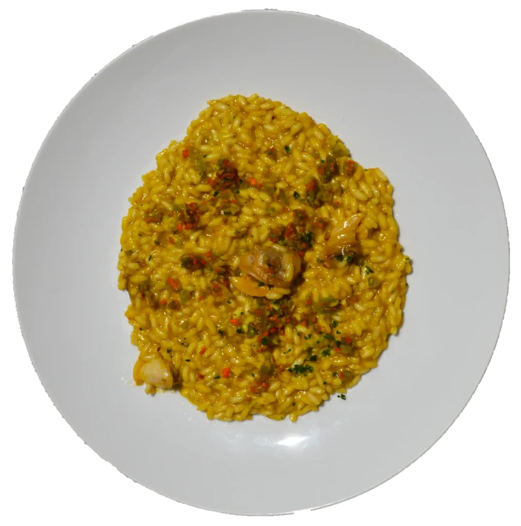 Risotto ai tartufi di mare e pesto di fiori di zucca