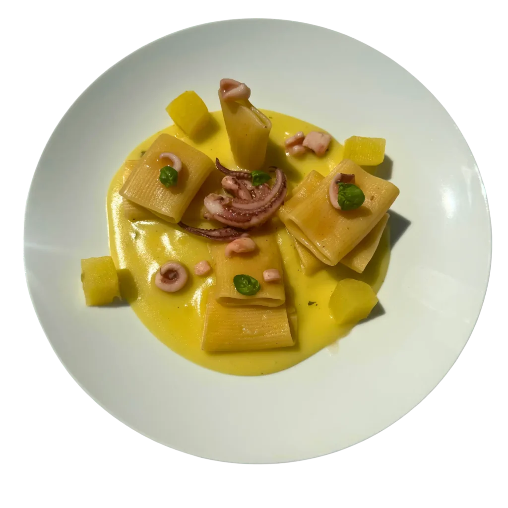 Paccheri totani Patate e basilico