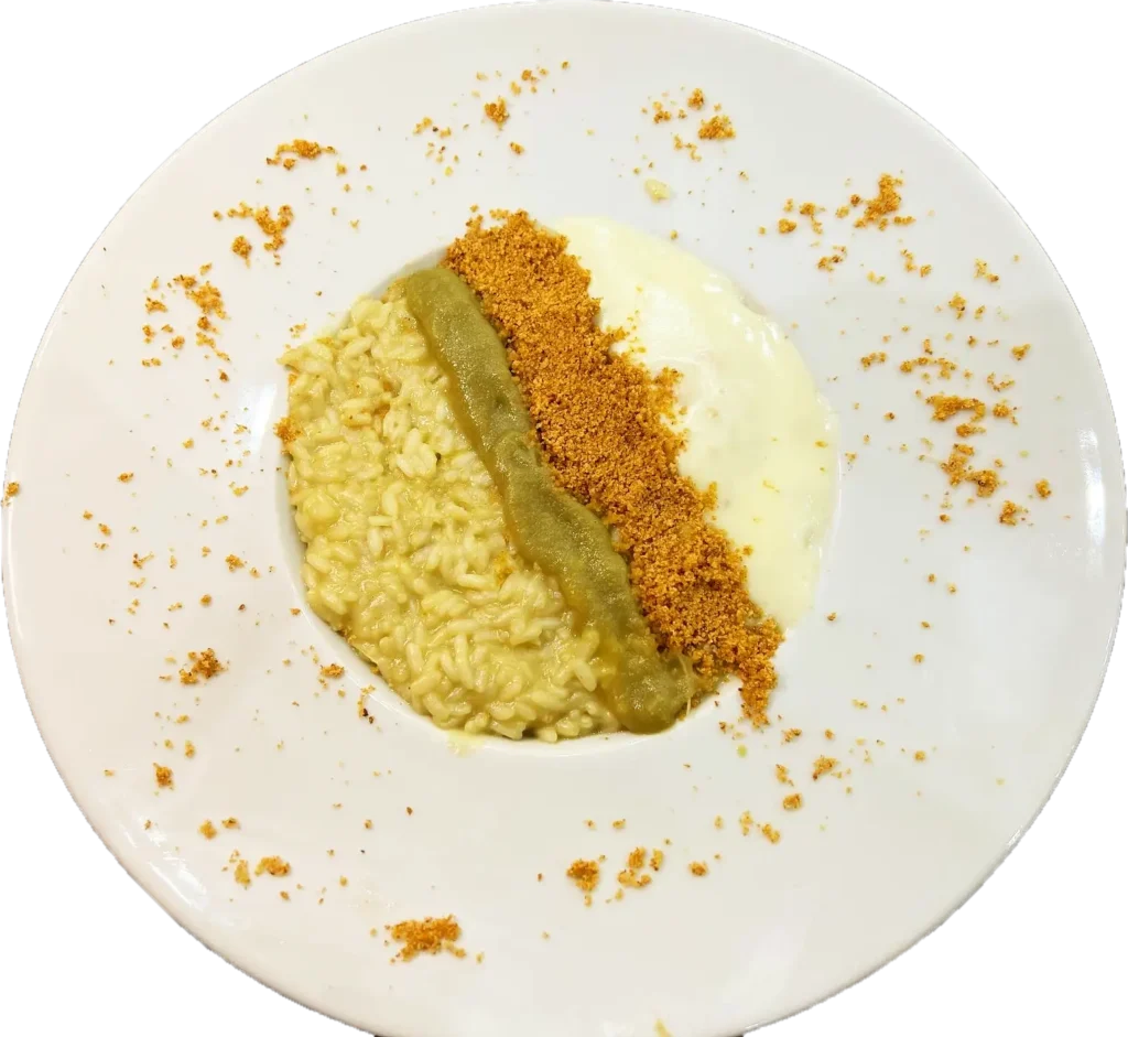 Risotto crema di carciofi fonduta di pecorino e ca’ muddica