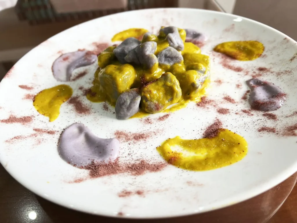 Gnocchi viola crema ai fiori di zucca e zafferano