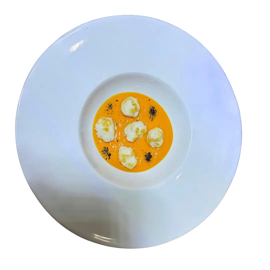 Cari amanti della cucina creativa e degli ingredienti sorprendenti, oggi vi propongo una delizia che vi conquisterà con il suo mix di sapori e la sua presentazione mozzafiato: gli gnocchi di seppia con crema di patate dolci, zenzero e limone, arricchiti da un tocco insolito ma irresistibile, il carbone di seppia.In questa ricetta, ho voluto unire ingredienti apparentemente diversi per creare un piatto che vi porterà in un viaggio gastronomico indimenticabile. Con la delicatezza della seppia che si sposa con la dolcezza delle patate e la freschezza dello zenzero e del limone, non potrete fare a meno di sorridere ad ogni boccone!Preparatevi a deliziare il vostro palato e a stupire i vostri ospiti con questa creazione culinaria che è un vero spettacolo per gli occhi e per il gusto. E non preoccupatevi, vi guiderò passo dopo passo attraverso la preparazione, rendendo questo piatto accessibile anche ai cuochi meno esperti.Siete pronti a vivere un'esperienza culinaria indimenticabile? Allacciate il grembiule e seguite la mia ricetta per gli gnocchi di seppia con crema di patate dolci, zenzero e limone, e lasciatevi trasportare dal sapore straordinario di questa creazione unica. Buon appetito e buon divertimento in cucina!