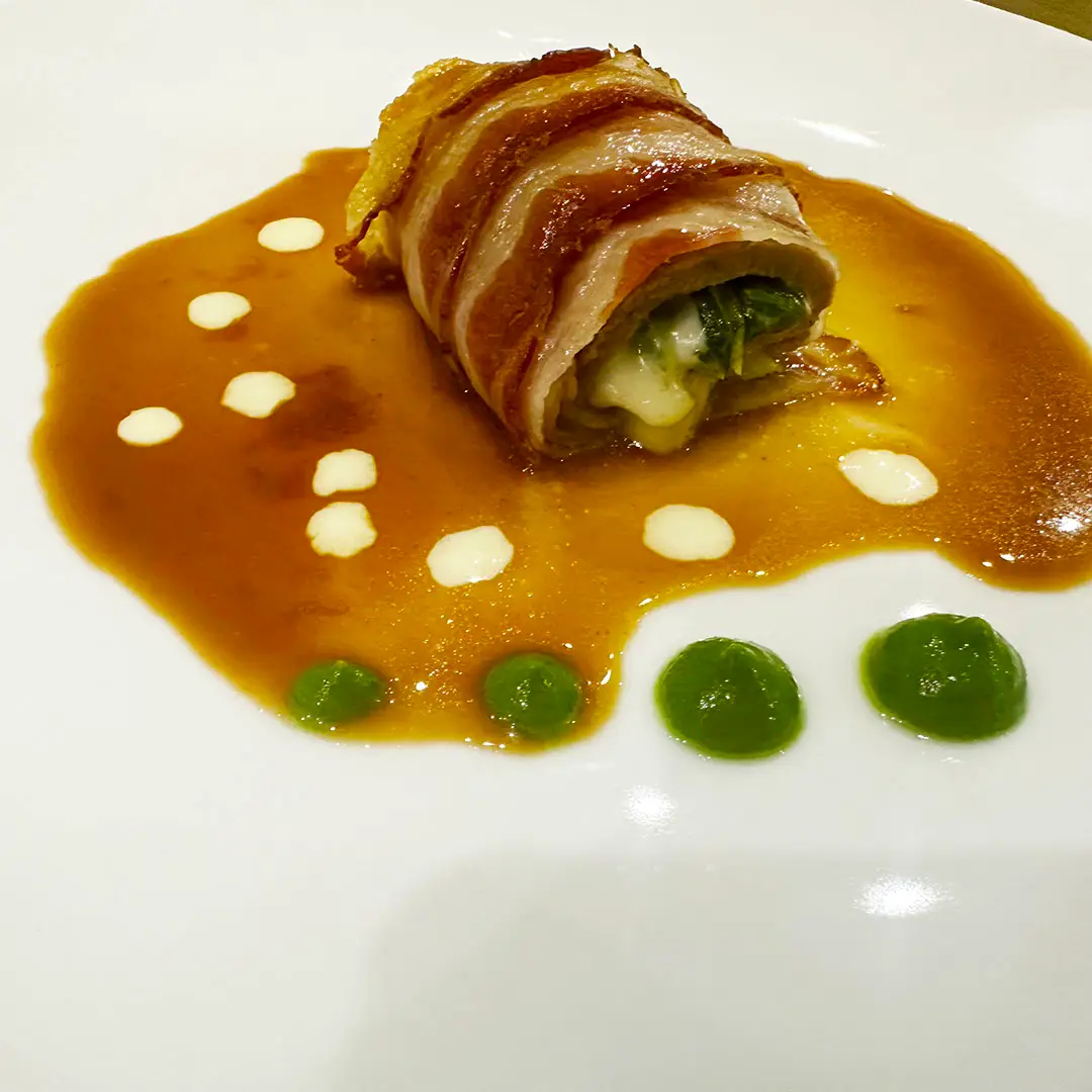 - arrotoliamo le fettine su se stesse e avvolgiamole nella pancetta