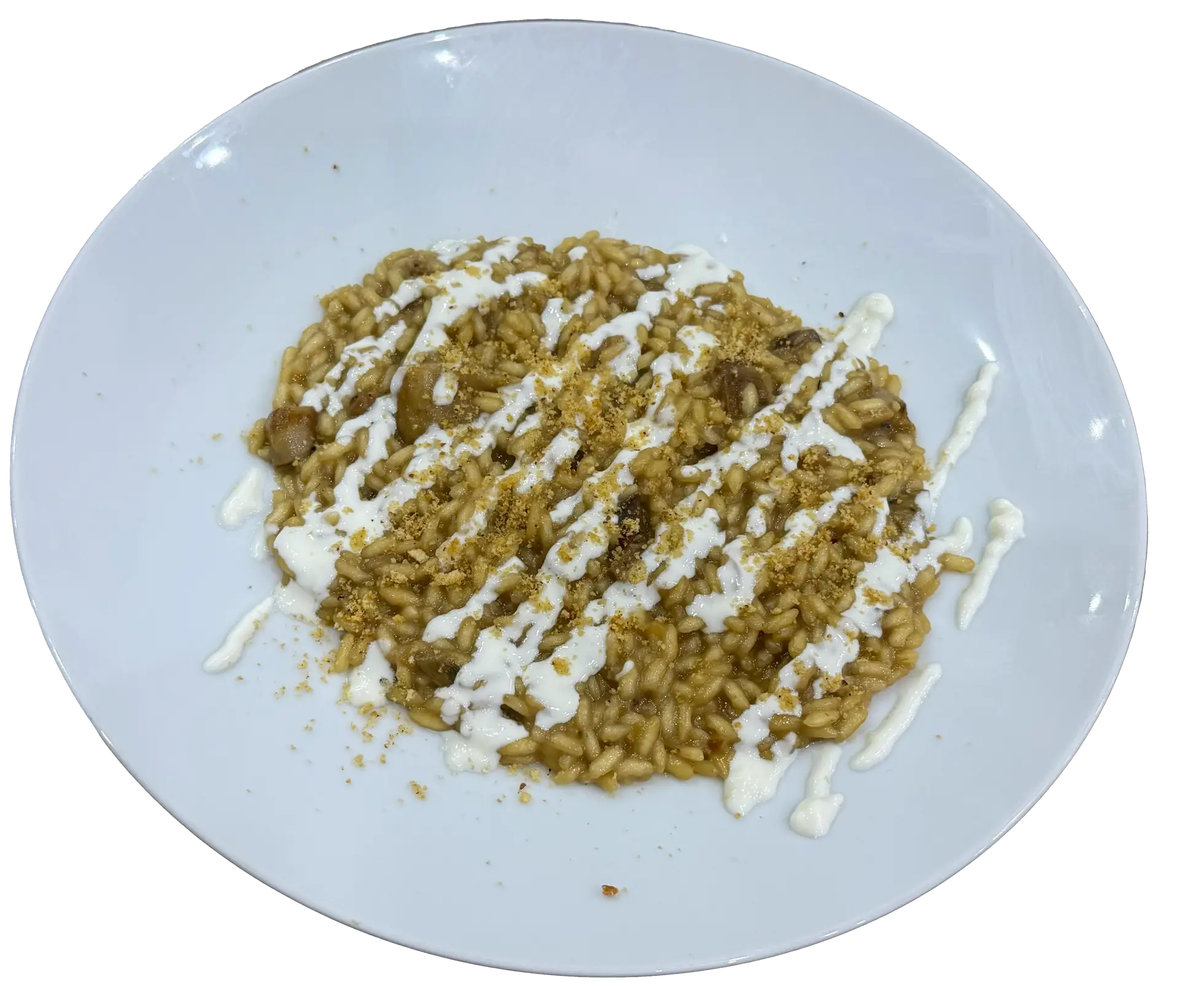 Un risotto ai porcini con stracciatella e tarallo napoletano che racchiude profumi e sapori autentici: l’intensità dei funghi porcini, la cremosità avvolgente della stracciatella e la croccantezza del tarallo napoletano. Un piatto che gioca con i contrasti, equilibrando terra e tradizione con un tocco raffinato. Perfetto per chi ama i sapori decisi, ma con una consistenza morbida e vellutata. Un’esperienza di gusto che conquista al primo assaggio! 🍂✨
