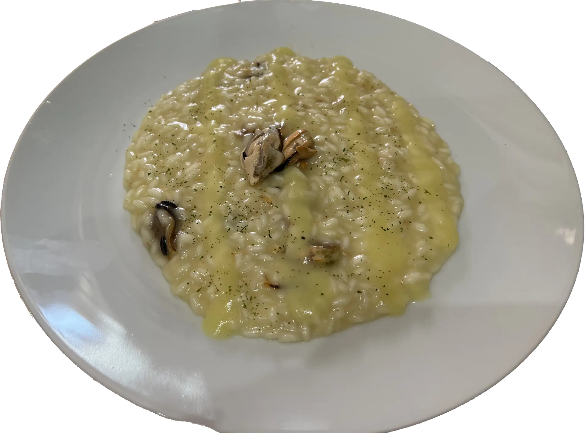 - quasi alla fine della cottura del riso(dopo circa 10/12 minuti) inserite le cozze sgusciate e la crema di patate e ultimare la cottura, dopo qualche minuto assaggiate e sistemate di sale,
