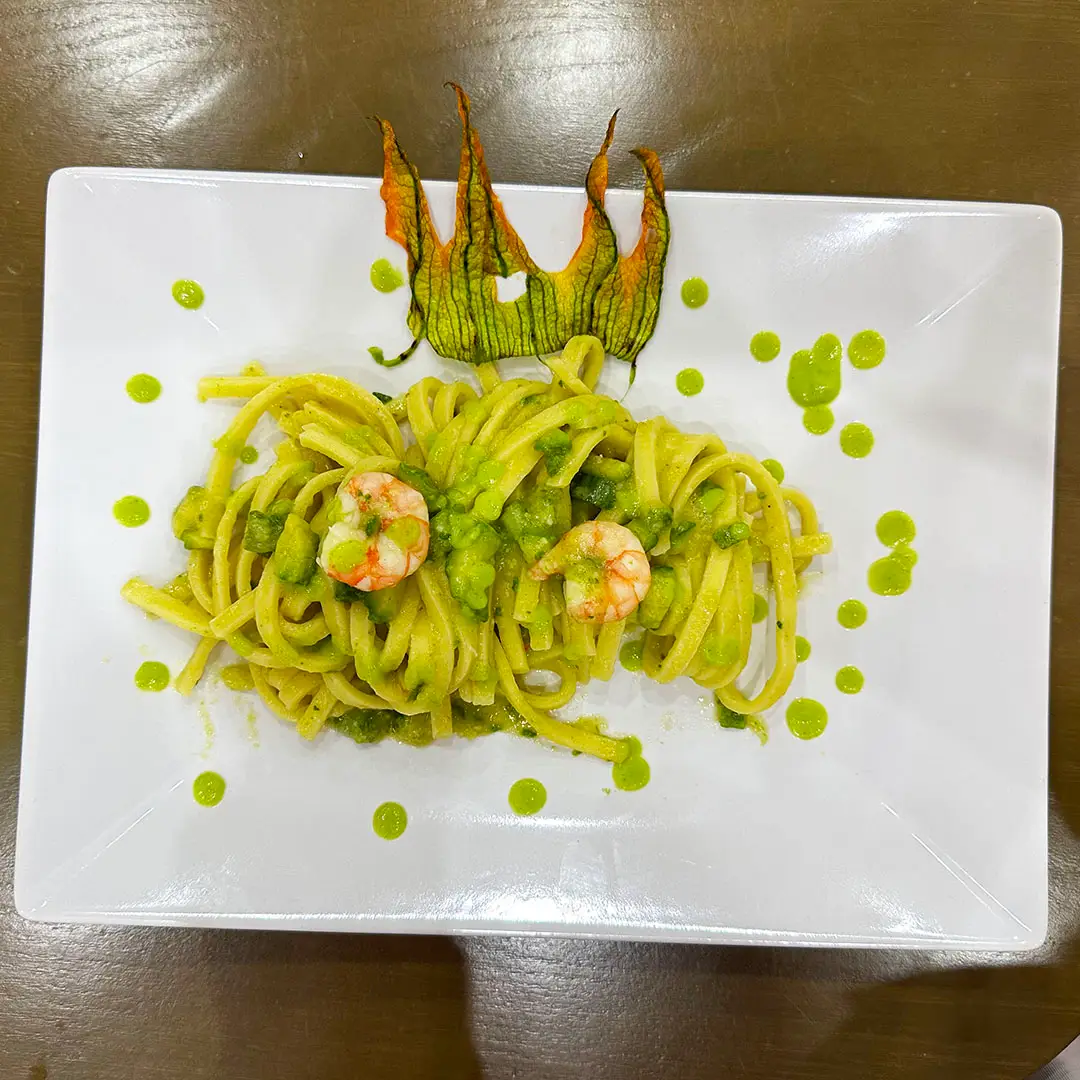 Benvenuti a questa prelibata ricetta di scialatielli ai gamberi e zucchine, un piatto tradizionale e molto diffuso lungo la splendida costiera Sorrentina! Questa regione, famosa per le sue meravigliose vedute sul mare e per la sua raffinata cucina mediterranea, ci offre un connubio perfetto tra ingredienti freschi e sapori intensi.Gli scialatielli, una varietà di pasta fresca tipica della Campania, sono il protagonista di questa preparazione. La loro consistenza al dente e la capacità di trattenere il condimento in modo eccellente rendono questa pasta la scelta ideale per accompagnare gamberi e zucchine.I gamberi, pescati nelle acque cristalline del Mar Tirreno, apportano un sapore delicato e pregiato a questo piatto. Le zucchine, verdura estiva per eccellenza, apportano una dolcezza naturale e una nota di freschezza che si sposano alla perfezione con il sapore dei gamberi.Questa ricetta, tramandata di generazione in generazione lungo la costiera Sorrentina, rappresenta un connubio perfetto tra i prodotti locali e la tradizione culinaria. È un piatto che incarna l'amore per il mare e i sapori genuini della cucina campana.Quindi, prendete un assaggio di questa straordinaria regione attraverso questa ricetta di scialatielli ai gamberi e zucchine, e lasciatevi trasportare in un viaggio di sapori mediterranei che vi delizieranno ogni boccone. Buon appetito!